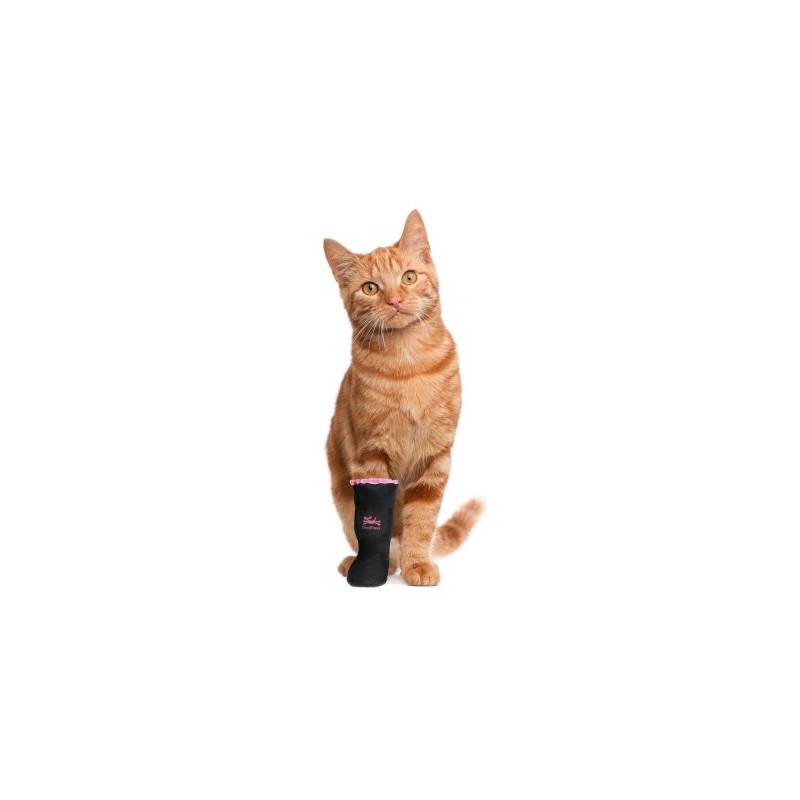 Si vous mettez la chaussure sur une seule patte, vous pouvez mettre un élastique à cheveux (pas trop serré) sur l’autre patte afin d’améliorer l’équilibre, d’homogénéiser les sensations et éviter qu’il lève la patte en marchant.
