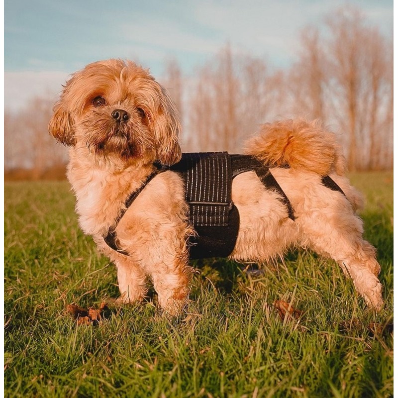 Oui, notre ceinture dorsale s'adapte de manière à laisser cette zone de votre chien libre pour faire de ses besoins sans que la ceinture ne bloque cette partie de son corps.
